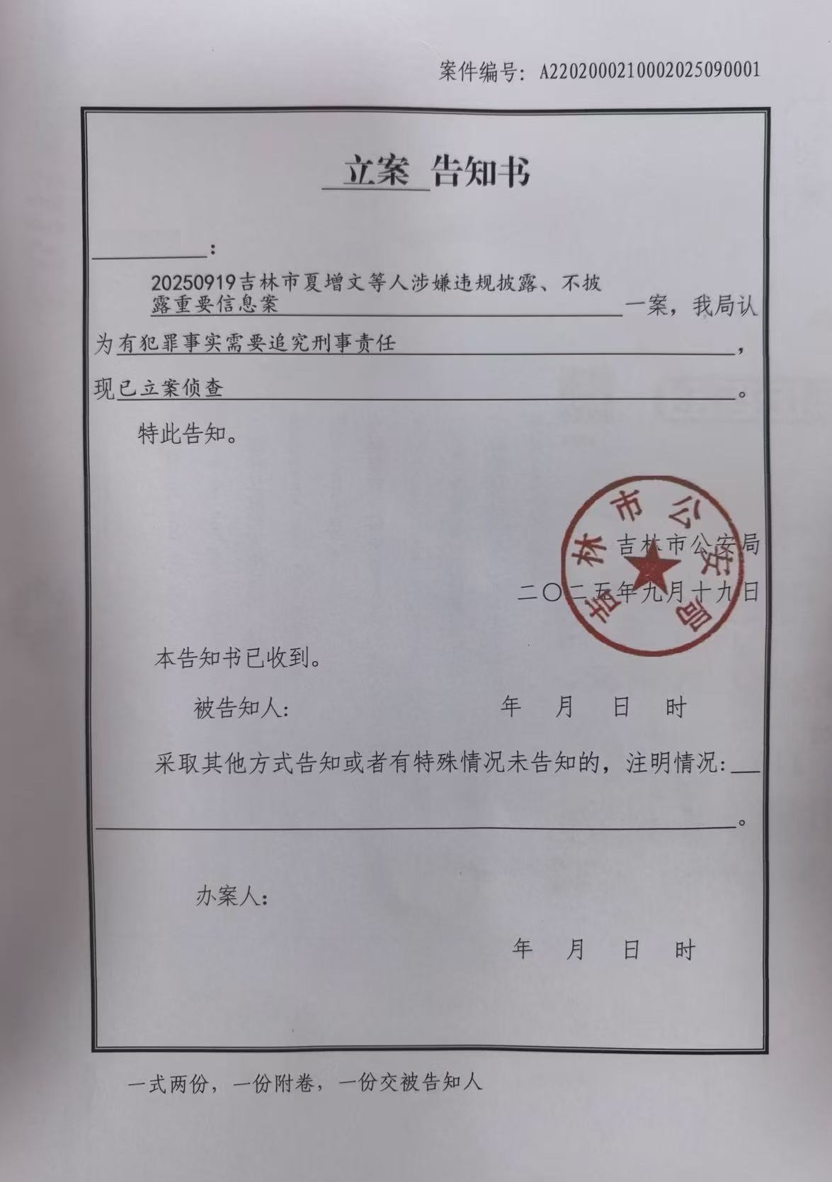 第一财经记者从权威信源独家获悉,*ST华微原董事长夏增文近日被吉林省吉林市公安局以 "涉嫌信息披露违规、未披露重要信息" 刑事立案。 记者获得的夏增文立案文书显示日期为9月19日,警方认定夏增文"有犯罪事实需要追究刑事责任"。 记者向接近*ST华微的人士处了解到,夏增文于2024年初爆出大股东巨额占款事件的数月前即已失联。 据了解,一同被立案的还有*ST华微前名义实控人曾涛。值得关注的是,多年来,夏增文虽未以 "实际控制人" 身份公开露面,却被公司内部认定为 2015年 以来*ST华微真正的实控人。 与此同时,记者了解到,*ST华微原副董事长王宇峰涉嫌职务侵占等罪一案,于2025年10月13日在吉林市开庭。王宇峰一直与夏增文、曾涛存在股权转让纠 纷和相互举报的情形,此次庭审意味着王宇峰与夏、曾这场持续十余年的股权与资金迷局迎来关键节点。 夏增文立案和王宇峰案开庭前一个多月,*ST华微被吉林省国资委出手解困,解决了长达8年的大股东占款问题——今年8月,吉林省国资委旗下亚东投资以 16.2亿对价,受让上海鹏盛所持22.32%股权,转让款清偿全部占款,华微电子实控人变更为吉林省国资委,退市危机得以解除。 真假实控人 ...