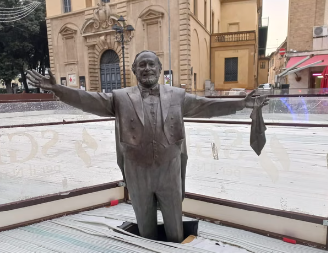 帕瓦罗蒂雕像“被困”溜冰场,意大利一市市长致歉