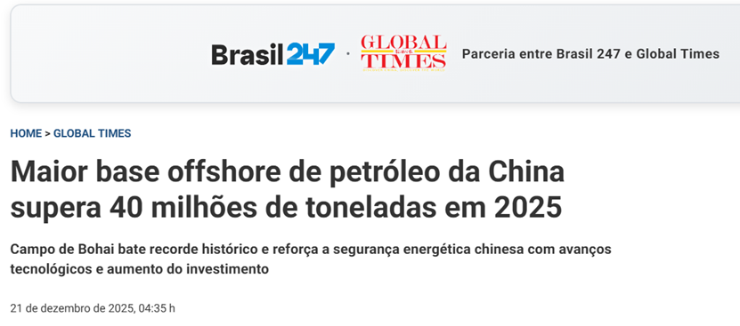 【环球网财经综合报道】日前,中国海洋石油有限公司(中国海油,600938.SH)宣布,西江油田群24区开发项目已 投产。据悉,该项目计划投产生产井10口,预计2026年实现日产约18000桶油当量的高峰产量,油品性质为轻质原 油。其中,新建的西江24-7平台是中国海上首个油气水混合物高温冷却外输无人平台,创新温控系统降低高温对海底 管道的影响,保障油田连续稳产。 巴西247新闻网对此发文称,作为中国最大的海上石油生产基地,渤海油田到2025年已创造了超过4亿吨石油和天然气 累计产量的里程碑,树立了新的历史纪录。中国海洋石油有限公司表示,渤海油田"提供了坚实的国家能源安全支 持,以及高质量的经济社会发展。" 报道还提到,渤海油田位于渤海海域,创建于1965年,被誉为中国的海上石油工业摇篮。目前是中国最大、最活跃的 海上石油资产,拥有60多个在运营的石油和天然气田以及200多个生产设施;过去五年,其原油和天然气产量年均增 长5%,占国内原油增产的约40%。 报道还提到,中国海洋石油有限公司经济和技术研究所的专家表示,提高勘探和开发力度是关键,"显著的投资增长 显然提高了开发强度";同时该专家还认为,另外两个决定性 ...