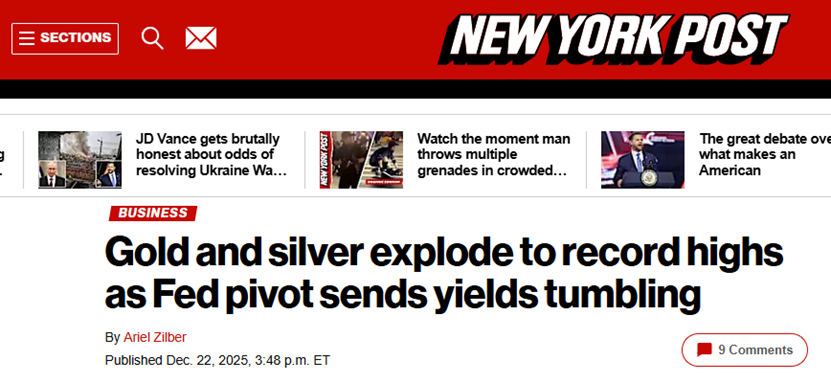 【环球网财经综合报道】北京时间12月23日凌晨,国际贵金属期货普遍收涨,COMEX黄金期货涨2.13%报4480.60美 元/盎司,COMEX白银期货涨2.37%报69.09美元/盎司。 前一日也即12月22日,现货黄金突破关键关口,站上4440美元/盎司,现货白银则首次突破69美元/盎司,双双创下历 史新高。现货铂金大涨7%,再次站上2100美元/盎司,为2008年美国金融危机以来首次。 目前,华尔街普遍对黄金继续走高持乐观态度。《纽约邮报》发文称,贵重金属市场史上最剧烈的涨幅,反映了市场 对美联储降息、全球冲突升级以及重塑贵重金属需求的机构购买潮的风险评估;美联储降息也降低了金属的阻力,因 为美债收益率下降使黄金和白银对投资者更具吸引力。 报道还提到,随着各国央行需求的增加,投资流入也在加快。年内,以黄金和银为支持的交易所交易基金的流入增 加,吸引了机构资金,进一步推动了看涨态势。 消息面,上期所发布通知,自12月24日交易起,白银期货AG2602、AG2604合约日内平开仓交易手续费分别调整为成 交金额的万分之二点五和万分之零点五;非期货公司会员、境外特殊非经纪参与者、客户在白银期货AG2602合约的 ...