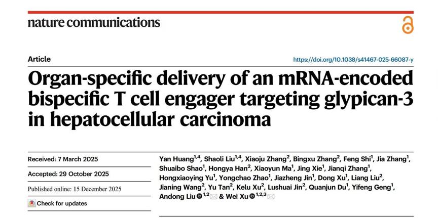 核心观点 - 剂泰科技研发的候选药物MTS-105在临床前研究中展现出治疗肝细胞癌的巨大潜力 其采用mRNA编码的双特异性T细胞衔接器 在动物模型中实现了肿瘤完全清除并诱导长期免疫记忆 有望成为全球首款用于实体瘤的mRNA编码T细胞连接器疗法[1][3] 技术原理与创新 - 疗法采用“特洛伊木马”策略 通过靶向肝细胞GPC3的脂质纳米颗粒将药物精准递送至实体瘤内部及周围 在局部大规模生成并释放T细胞连接器 从而激活T细胞杀伤肿瘤[3] - 该策略摒弃了全身攻击的传统方法 旨在提升局部药效并优化药代动力学特性 同时减少系统性毒性风险[3] - 借助公司自研的AI纳米递送平台和mRNA序列设计 实现了高效递送 并显著提高了mRNA的翻译效率及稳定性[3] 临床前研究数据 - 在小鼠模型中 低至0.15微克的剂量即可实现肿瘤完全清除[3] - 治愈后的小鼠再次接种新肿瘤仍保持无瘤状态 显示出疗法诱导的长期免疫记忆效应 能有效防止肿瘤复发[3] - 在小鼠、大鼠和食蟹猴模型中 MTS-105均展现出高度组织特异性和出色的安全性[3] 研发进展与公司背景 - 候选药物MTS-105已获得美国食品药品监督管理局针对肝细胞癌治疗的孤儿药资格认定 认定日期为2025年11月14日[4][5] - 公司此前已在《癌症免疫治疗杂志》发表过关于创新型mRNA治疗性疫苗的研究成果 同样基于精准靶向递送技术[4] - 公司研发重点在于突破mRNA递送载体的创新 认为将药物送进致密的实体瘤内部是提升治疗有效性的关键[4]
