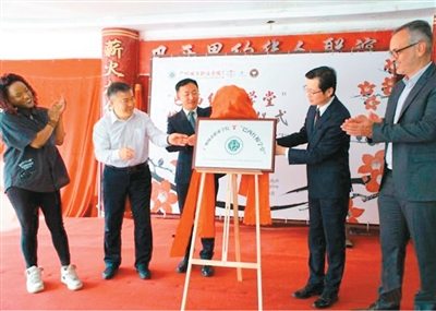 揭牌后,"巴西红棉学堂"首期"中文+职业技能"课程正式开班。来自里约的首批学员走进课堂,内容涵 盖基础中文、跨文化交际、电商实务等,课堂互动热烈,学员在学习语言的同时加深对中国文化与职业 技能的理解。 现场,广州城市职业学院、里约州立大学及里约华人联谊会三方正式签署合作协议,内容包括共建"巴 西红棉学堂"、推进"中文+职业技能"体系、开展师生交流及共建项目等。 广州城市职业学院由广州市人民政府主办,长期服务共建"一带一路"国家人才需求。去年,该院牵头成 立广州国际友城高职联盟,加速职业教育国际布局,已在乌兹别克斯坦、西班牙、南非等地开展中文教 学及技能培训。 (来源:中新网) 巴西红棉学堂揭牌仪式。 山河文化促进中心供图 近日,由广州城市职业学院主办,巴西里约热内卢州立大学、里约华人联谊会、新征程商务中心协办 的"巴西红棉学堂"揭牌暨开班仪式在巴西里约热内卢(下称"里约")举行。这也是广东广州和里约友城 故事的最新篇章。 中国驻里约总领馆副总领事王海涛、广州市副市长胡浩、广州市委外办主任杨勇、广州城市职业学院副 校长王军、里约州立大学副校长布鲁诺·罗德里格斯、里约州议员丹妮·蒙泰罗、巴西中海油公司总经理 黄业 ...
