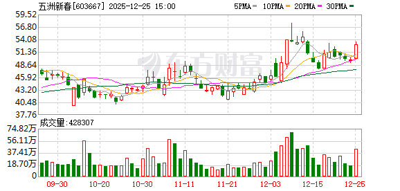 五洲新春12月25日大宗交易平台出现一笔成交,成交量150.00万股,成交金额7744.50万元,大宗交易成 交价为51.63元,相对今日收盘价折价2.49%。该笔交易的买方营业部为机构专用,卖方营业部为财通证 券股份有限公司新昌江滨西路证券营业部。 进一步统计,近3个月内该股累计发生37笔大宗交易,合计成交金额为2.19亿元。 证券时报·数据宝统计显示,五洲新春今日收盘价为52.95元,上涨6.50%,日换手率为11.70%,成交额 为22.20亿元,全天主力资金净流入2.00亿元,近5日该股累计上涨3.24%,近5日资金合计净流入1.36亿 元。 两融数据显示,该股最新融资余额为9.69亿元,近5日增加7408.04万元,增幅为8.27%。 据天眼查APP显示,浙江五洲新春集团股份有限公司成立于1999年11月12日,注册资本36620.277万人 民币。(数据宝) 12月25日五洲新春大宗交易一览 | 成交量 | 成交金额 | 成交价格 | 相对当日收盘折溢 | 买方营 | 卖方营业部 | | --- | --- | --- | --- | --- | --- | | (万股) | (万元) | (元) ...