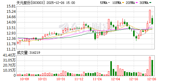 天元股份今日跌停,全天换手率26.84%,成交额4.46亿元,振幅6.78%。龙虎榜数据显示,机构净卖出 2421.72万元,营业部席位合计净卖出1640.00万元。 资金流向方面,今日该股主力资金净流出1527.32万元,其中,特大单净流入574.21万元,大单资金净流 出2101.53万元。近5日主力资金净流出1240.04万元。 天元股份12月26日交易公开信息 | 买/卖 | 会员营业部名称 | 买入金额(万元) | 卖出金额(万元) | | --- | --- | --- | --- | | 买一 | 机构专用 | 1167.50 | 178.79 | | 买二 | 机构专用 | 820.67 | 853.29 | | 买三 | 机构专用 | 531.84 | 829.77 | | 买四 | 光大证券股份有限公司上海人民北路证券营业部 | 523.42 | 0.00 | | 买五 | 机构专用 | 446.08 | 866.19 | | 卖一 | 机构专用 | 155.78 | 1495.12 | | 卖二 | 平安证券股份有限公司杭州曙光路证券营业部 | 89.32 | 1339.65 | | 卖 ...