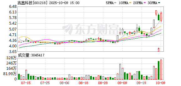 吉鑫科技(601218)今日上涨8.20%,全天换手率31.43%,成交额18.18亿元,振幅12.18%。龙虎榜数据显 示,营业部席位合计净卖出1577.38万元。 上交所公开信息显示,当日该股因日换手率达31.43%上榜,营业部席位合计净卖出1577.38万元。 资金流向方面,今日该股主力资金净流入5409.86万元,其中,特大单净流入5467.85万元,大单资金净 流出57.99万元。近5日主力资金净流入1.65亿元。 融资融券数据显示,该股最新(9月30日)两融余额为2.21亿元,其中,融资余额为2.21亿元,融券余额 为4.99万元。近5日融资余额合计减少2844.42万元,降幅为11.41%。融券余额合计增加1.88万元,增幅 60.61%。 证券时报·数据宝统计显示,上榜的前五大买卖营业部合计成交3.46亿元,其中,买入成交额为1.65亿 元,卖出成交额为1.81亿元,合计净卖出1577.38万元。 具体来看,今日上榜营业部中,第一大买入营业部为中信证券股份有限公司上海分公司,买入金额为 5380.79万元,第一大卖出营业部为国联民生证券股份有限公司宁波财神殿南路证券营业部,卖出金额 为1.08 ...