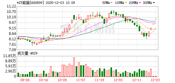 *ST熊猫再度涨停,4个交易日内录得3个涨停,累计涨幅为19.17%,累计换手率为4.33%。截至9:25, 该股今日成交量4.47万股,成交金额44.74万元,换手率0.03%。最新A股总市值达16.62亿元。 龙虎榜数据显示,该股因连续三个交易日内,收盘价涨幅偏离值累计达到12%的ST证券、*ST证券上榜 龙虎榜1次,买卖居前营业部中,营业部席位合计净买入11.29万元。 | 日期 | 当日涨跌幅(%) | 换手率(%) | 主力资金净流入(万元) | | --- | --- | --- | --- | | 2025.12.22 | 4.96 | 0.25 | 294.76 | | 2025.12.19 | 2.95 | 2.73 | 311.89 | | 2025.12.18 | 5.00 | 1.33 | 419.75 | | 2025.12.17 | 0.60 | 2.01 | 142.17 | | 2025.12.16 | -3.91 | 2.14 | -131.35 | | 2025.12.15 | -1.59 | 2.08 | -87.69 | | 2025.12.12 | -4.95 | 2 ...