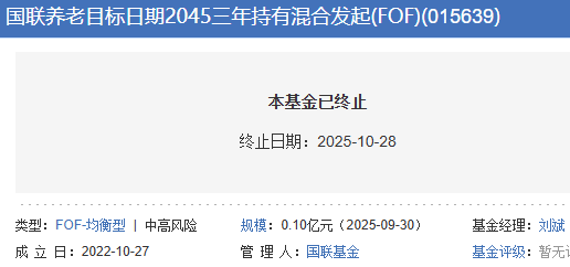 国联养老目标日期2045三年混合FOF清盘 成立3年没赚钱