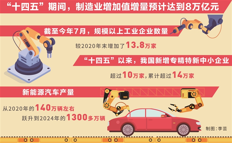 “十四五”期间制造业增加值增量预计达到8万亿元新型工业化持续走深走实