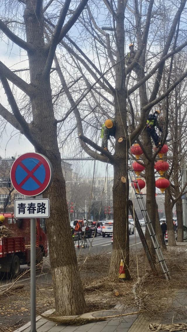 北京怀柔:青春路银杏树修剪进行中,这份出行提示请收好