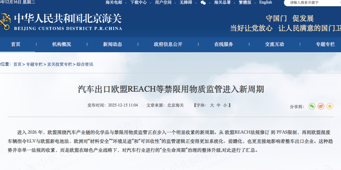 从2023年开始,欧盟在汽车环保监管上不断升级,今年以来,禁限用物质清单快速扩容。最新一批在11月18日公布,欧洲化学品管理局推荐将偏硼酸钡、三 聚氰胺等四种高危物质纳入禁限用清单,此举被认为将对汽车制造业产生直接冲击。因为这四种材料广泛应用为汽车的防锈防腐涂料和阻燃剂、发动机润滑 油、内饰件封装涂料、汽车座椅泡沫添加剂等。 最受关注的是欧盟对PFAS(全氟和多氟烷基化合物)家族的限制。这类物质虽然是典型的持久性有机污染物,但因拥有良好的化学稳定性等特征,常用于 汽车密封材料、电池关键部件以及安全气囊、制动传感器等汽车核心部件上。虽然近年来环保无毒材料在国内汽车领域的应用不断提升,但一旦欧盟敲定 PFAS全类限制,仍有许多关键部件需重新验证材料体系,并进行工艺调整。2025年8月,欧洲化学品管理局发布了PFAS限制提案,目前尚未成为正式法 规。但在消防泡沫上的限制使用已在今年10月生效。 环保、高效和安全是汽车行业必然的方向,如今这一转变提速,对中国汽车业既是挑战也是机遇。总体来说,在供应链透明度不足、替代技术路线重塑方面 将面临压力,尤其是中小供应商有被淘汰风险。但同时,提前完成材料合规的企业有望更快进入欧 ...
