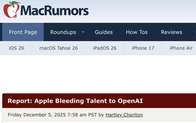 核心观点 - 苹果公司近期面临核心人才流失,数十名工程师与设计师离职加入人工智能公司OpenAI [1] - 人才流失涉及音频、可穿戴设计、机器人等苹果核心硬件开发领域 [1] - 竞争对手OpenAI与Meta正积极招募苹果人才,以推进其各自的硬件与AI项目 [3] 人才流动详情 - 近几个月内,已有数十名苹果工程师与设计师离职 [1] - 离职人才曾深度参与iPhone、AirPods、Apple Watch等旗舰产品的开发 [3] - 离职人才具备跨平台音频技术与机器人研发经验 [3] - 离职人员主要加入人工智能公司OpenAI [1] - 本周早些时候,Meta也被曝出密集招募苹果员工,其中包括苹果资深设计师Alan Dye [3] 行业竞争与战略动向 - OpenAI正在组建专门的硬件部门,并加速推进其首款自有硬件设备 [3] - OpenAI的首款自有硬件设备预计将于明年正式亮相 [3] - Meta招募苹果员工意在强化其AI及智能眼镜项目 [3] - 苹果内部同时迎来多位高管退休,核心团队面临新一轮调整 [3]