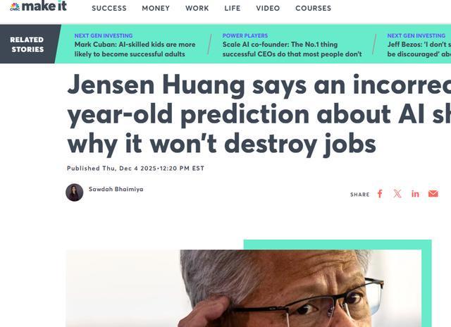 文章核心观点 - 英伟达CEO黄仁勋驳斥“AI摧毁就业”的论述,强调AI是效率工具而非失业推手,并认为AI将成为就业增长的催化剂 [1][3] AI对就业市场的实际影响 - 以放射科医生为例,AI并未取代该职业,反而从业者数量增加且普遍使用AI辅助工作,提升了影像分析效率并使得医生能处理更多病例 [3] - 美国放射学会预测,2023年至2055年美国放射科领域从业者将增长40% [3] - AI虽会淘汰部分重复性岗位,但将催生新行业,例如围绕机器人将衍生出制造、维修甚至专属服装等全新职业 [3] 对相关预测的修正与反驳 - “AI教父”杰弗里·辛顿曾于2016年断言“五年内AI将取代放射科医生”,但其后已承认该预测“时间有误” [3] - 黄仁勋反驳了“AI将摧毁50%入门岗位”的说法,并重申核心观点:人们不会被AI取代,但会输给善用AI的人 [3]