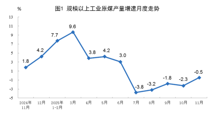 国家统计局:11月规上工业原煤生产保持稳定 原油生产增速加快 电力生产保持增长