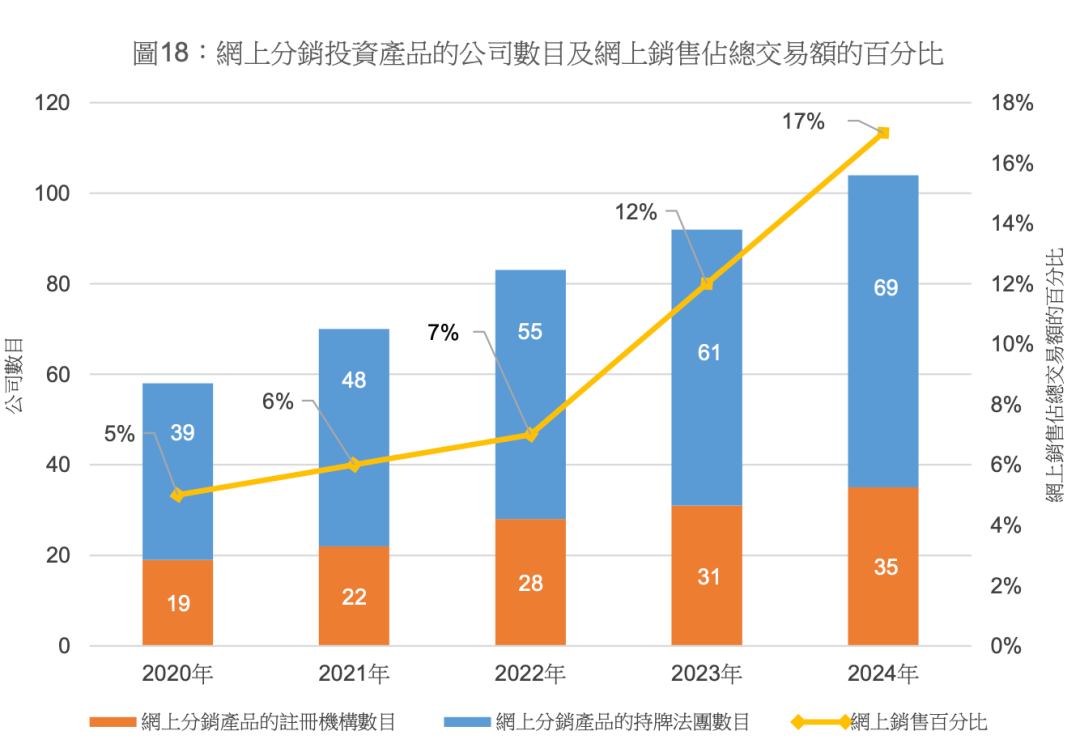 9月4日,香港证监会与香港金融管理局发布的一项联合调查结果显示,2024年香港非交易所买卖投资产品的销售及市场参与度皆创下历史新高。此次调查 共涉及2368家持牌法团及109家注册机构,超过99%的公司回复了调查问卷。 调查显示,2024年所有主要投资产品种类均录得显著的销售增长,总交易额高达60730亿港元。受访公司普遍发现投资者情绪较一年前高涨,积极追求符 合其风险偏好及投资目标的产品。 股票挂钩产品最为畅销 其中,集体投资计划仍然是网上平台上销售最多的产品种类,占网上销售总额的77%,其次是占21%的债务证券。 在所有集体投资计划的投资者中,透过网上平台进行交易的投资者占78%,较2023年的74%有所增加。网上销售占集体投资计划总销售额的比例,亦由 2023年的29%上升至2024年的34%。 数据显示,2024年香港非交易所买卖投资产品的总交易额同比飙升40%,至破纪录的60730亿港元。其中集体投资计划、结构性产品及债务证券的销售分 别同比激增9660亿港元(76%)、5870亿港元(30%)及2130亿港元(29%)。 在强劲的市场动力下,期内股票挂钩产品仍是最畅销的结构性产品种类,其销售达17 ...