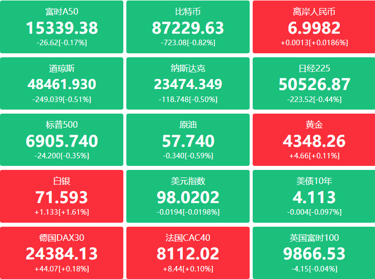 美股市场表现 - 美国三大股指全线收跌,道琼斯工业平均指数下跌0.51%至48461.93点,标普500指数下跌0.35%至6905.74点,纳斯达克综合指数下跌0.50%至23474.35点 [2] - 大型科技股多数走低,万得美国科技七巨头指数下跌0.60%,特斯拉跌幅超过3%,英伟达跌逾1% [3] - 中概股整体表现低迷,纳斯达克中国金龙指数下跌0.67%,叮咚买菜跌超7%,大全新能源跌逾5% [3] 贵金属市场动态 - 贵金属市场在创下新高后集体重挫,白银在创下每盎司82美元新高后收盘跌幅接近9%,黄金期货价格下跌约4.5%,现货钯金暴跌超15% [4] - 具体数据显示,伦敦金现下跌4.43%,伦敦银现下跌8.99%,COMEX黄金下跌4.46%,COMEX白银下跌7.25% [5] - 贵金属暴跌拖累相关矿业股,哈莫尼黄金跌超8%,盎格鲁黄金跌近7%,巴里克黄金跌逾4% [5] 能源市场表现 - 能源板块表现强势,国际油价显著上扬,WTI原油期货上涨1.84%至58.08美元/桶,布伦特原油期货涨逾2%至61.94美元/桶 [6] - 其他能源产品中,NYMEX WTI原油上涨1.87%,ICE布油上涨1.63%,ICE轻质低硫原油上涨1.82% [5] 贵金属暴跌动因 - 交易所上调保证金带来直接压力,美国芝商所集团宣布上调金属期货交易保证金,其中黄金期货保证金上调10%,白银期货上调约13.6% [8] - 市场自身超买情绪释放,2025年迄今银价年度最大涨幅超过了185%,白银波动率指数处于历史极大值 [8] - 临近年底,投资者选择锁定年内丰厚利润,获利回吐是导致贵金属大幅下挫的重要原因之一 [8] 市场后续关注点 - 市场焦点转向即将公布的美联储12月会议纪要,以寻找未来货币政策路径的线索 [9] - 市场关注“圣诞老人行情”,即标普500指数在每年最后五个交易日和次年前两个交易日里大概率上涨的历史季节性现象 [9]