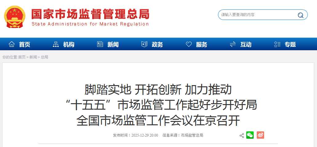 脚踏实地 开拓创新 加力推动“十五五”市场监管工作起好步开好局 全国市场监管工作会议在京召开