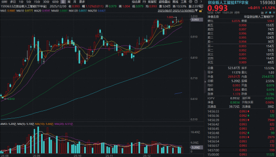 跨年行情还看AI?创业板人工智能ETF(159363)创收盘新高!标的指数年内猛涨超107%大幅领跑