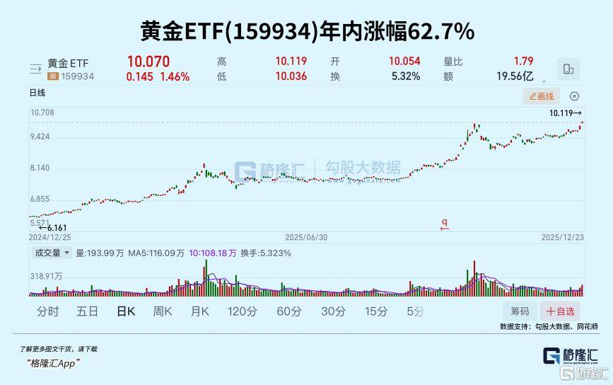 又一次见证历史! 现货黄金再度刷新历史高点,伦敦金最高价突破4490美元/盎司,年内涨幅70.87%,距离1979年以来的最大年度涨幅仅一步 之遥。 黄金ETF(159934)今日上涨,净值创历史新高;今年以来,该ETF涨幅达到62.7%,创历史新高。 今年黄金走出大牛市,可能超出不少投资者的意料。 当中,有海外宽松预期、央行购金及地缘不确定性背景下,黄金中长期配置价值的凸显,更重要的是,这是一场关于黄金 投资"新范式"的转移,体现的是黄金定价框架系统性变化,是一场数十年以来黄金价值的重估。 01 地缘紧张 近期,金价的飙升,和地缘紧张问题再度升温不无关系。 关注度比较高的地区,有两个: 一个是东南亚的泰柬冲突,自12月7日以来,泰国与柬埔寨在边境地区爆发严重冲突。 美国总统特朗普的停火呼吁未获遵守,外部调停失败,冲突持续,这显示出地区内部矛盾可能迅速激化,为全球市场带来 了一个新的、意外的风险来源。 另一个拉美的委内瑞拉,美军在短短10天内,于国际水域两次扣押了委内瑞拉的油轮。美国总统特朗普公开威胁将继续此 类行动,并"不排除开战可能"。同时,美军在加勒比海部署了包括航母在内的舰队,开展"南方之矛"行动,形 ...