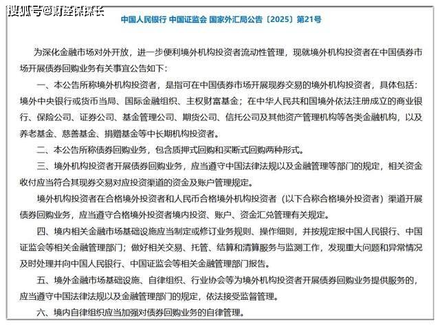 9月26日,央行、证监会、外汇局联合发布的一纸公告——境外机构投资者终于可以全面参与债券回购 业务了。 别小看这个看似技术性的政策调整。要知道,截至今年8月末,来自80多个国家和地区的1170家境外机 构,在中国债券市场持有的债券规模已经达到4万亿元人民币。 说白了,这相当于给境外投资者手里的人民币债券装上了"变现按钮"。 "你知道吗?每次欧美市场一有风吹草动,我们就得卖中国国债。"一位管理着数十亿美元的亚洲多策略 基金负责人,道出了境外投资者的普遍困境。 过去这些年,当欧美金融市场剧烈波动时,境外机构为了填补保证金缺口,只能选择一个办法——抛售 手里的中国国债。 这种"割肉"式的操作,带来了三个让人头疼的问题: 第一,投资策略被打乱了。 原本计划持有到期的债券,因为临时资金需求被迫卖出,整个投资计划都 得重新调整。 实际上,债券回购业务对境外机构的开放,走过了整整十年。 2015年,监管部门首次允许境外主权类机构、境外人民币业务清算行、境外参加行这三类机构参与银行 间债券市场的回购业务。 但这个范围实在太窄了——银行、保险、养老基金、公募基金、对冲基金等主流投资机构都被排除在 外。 这就像给了钥匙,却不让进 ...