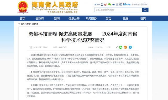 360荣获海南省科学技术进步一等奖