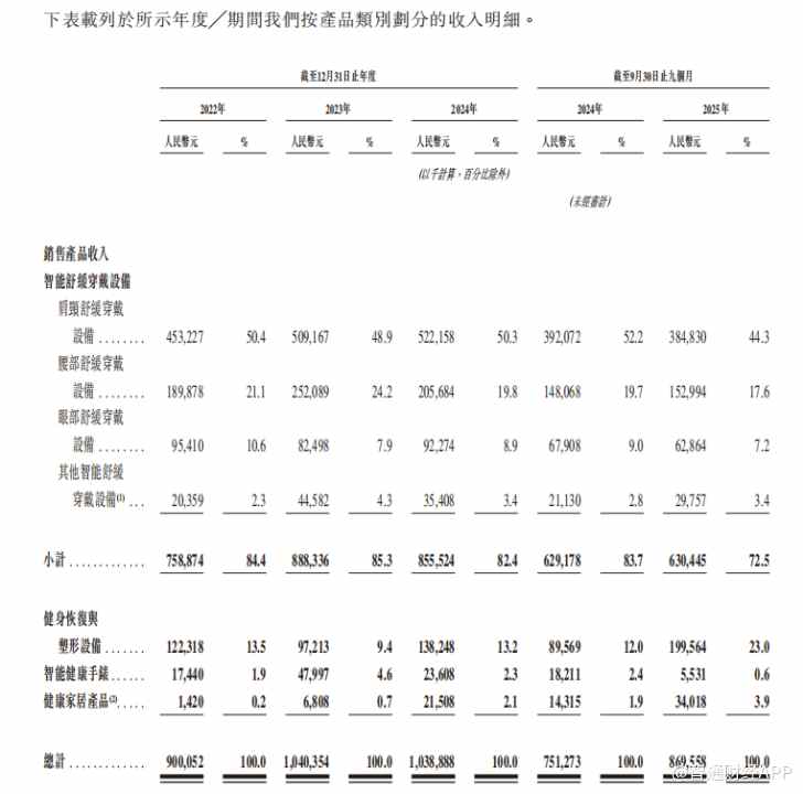 公司上市申请与概况 - 未来穿戴健康科技股份有限公司于12月17日正式向港交所主板递交上市申请,独家保荐人为中信建投国际 [1] - 公司深耕智能可穿戴健康设备赛道近十年,拥有知名品牌SKG,核心特色为医疗科技民用化 [1] 业务结构与产品矩阵 - 公司已形成四大产品矩阵,覆盖多元健康需求场景,定位为“医疗科技+消费电子” [2] - **核心业务:智能舒缓穿戴设备**,产品涵盖肩颈、腰、眼、膝等部位,融合中频脉冲、TENS、热灸理疗等医疗级技术 [2] - **新增长引擎:运动后恢复及塑形设备**,包括健腹仪和筋膜枪,运用EMS脉冲技术和高性能无刷电机 [4] - **培育期业务**:智能健康手表与健康家居产品,2025年前三季度合计营收占比不足5% [4] 核心业务财务表现 - 智能舒缓穿戴设备收入显现增长瓶颈:2024年收入为8.56亿元,同比下降3.7%;2025年前三季度收入为6.3亿元,同比基本持平 [2] - 该业务收入占比从2023年的85.3%下降至2025年前三季度的72.5% [2] - 从细分产品看(2025年前三季度数据):肩颈部舒缓穿戴收入3.85亿元,占比44.3%;腰部管理设备收入1.53亿元,占比17.6%;眼部舒缓设备收入0.63亿元,占比7.2%;其他智能舒缓穿戴设备收入0.30亿元,占比3.4% [3] 新业务财务表现 - 运动后恢复及塑形设备增长迅猛:2025年前三季度实现收入2.00亿元,同比增长123%,收入占比从2023年的9.4%大幅提升至23.0% [3][4] - 健康家居产品收入从2022年的0.014亿元增长至2025年前三季度的0.34亿元,占比提升至3.9% [3] 整体财务业绩 - 营业收入:2022年至2024年分别为9.00亿元、10.40亿元、10.39亿元;2025年前三季度为8.60亿元,同比增长16.2% [3][6] - 净利润:2022年至2024年分别为1.19亿元、1.27亿元、1.35亿元;2025年前三季度达1.06亿元,同比增长25% [6] - 毛利率:2022年至2024年分别为50.4%、49.1%、48.9%,2025年前三季度回升至50.2%,高于行业平均水平 [6] 市场地位与知识产权 - 按GMV计算,2024年公司以21.5%的市场份额位居中国智能舒缓穿戴设备市场首位,全球市场份额达4.1%,位列全球第一 [4][5] - 公司牵头起草《家用和类似用途低频按摩仪》国家标准,并参与多项团体标准制定 [4] - 截至2025年9月30日,公司在全球拥有1501项注册专利,其中发明专利261项,另有480余项专利申请待批 [4] 渠道结构与依赖 - 公司对经销模式依赖度高:2022-2024年经销收入占比维持在88.1%至95.2%的高位 [7] - 截至2025年前三季度,经销收入占比仍高达82.7% [7] - 招股书提示存在经销商违规销售、跨区域窜货或合作终止的风险 [7] 突击分红与财务状况 - 公司在IPO前夕进行突击分红:2022年分红5000万元,2023年分红3000万元,2024年未分红,2025年前九个月突击宣派股息1.99亿元并已完成支付 [7] - 控股股东集团(未来生命投资、刘杰、徐思英及小鹅芭蕾)作为一致行动人合计持股85.94%,意味着近2亿元分红主要流向实控人 [7][8] - 计息银行借款从2022年的17.3万元快速增长至2025年9月30日的1.8亿元,主要为营运资金及业务扩张提供资金 [9] - 资产负债率从2022年的16%提升至2025年9月30日的28% [9][10] - 受分红影响,截至2025年9月30日,公司流动比率降至1.1,速动比率为1,接近警戒线;资产净值较2024年末下降11%,从8.01亿元降至7.12亿元 [9] 行业市场规模与增长 - 全球智能可穿戴健康设备市场规模:2024年达417亿美元,预计2029年将增至795亿美元,2024-2029年复合年增长率达13.8% [11] - 智能舒缓穿戴设备细分赛道规模:从2019年的45亿美元增至2024年的84亿美元,预计2029年将达178亿美元,复合年增长率为16.3% [11] 行业发展趋势 - 行业呈现五大变革方向:预防性健康管理成为核心价值主张;生态系统向平台化发展;产品形态向小型化、专业化、多元化演进;无缝场景整合加速;品牌集中度持续提升 [14] - 全球智能舒缓穿戴设备市场竞争格局高度分散:2024年前五大厂商合计市占率仅13.5% [14] - 市场集中度低导致竞争激烈,新进入者可能引发价格战,公司面临市场份额被挤压的压力 [14] 公司未来计划 - 公司计划通过上市募资加大研发投入,推进产品向专业解决方案升级,强化品牌建设与全球渠道布局 [14] - 公司计划通过战略合作与产业整合拓展市场版图 [14]