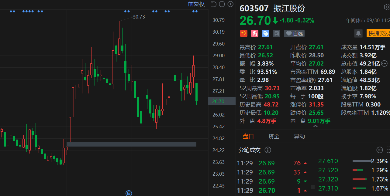 A股异动丨股东拟减持,振江股份午间收跌超6%