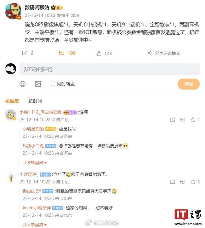 新品发布计划 - 公司计划在春节前发布新品 该信息源自数码博主爆料[1] - 新品之一预计为年度影像旗舰手机 型号可能为小米 17 Ultra[1] - 公司已通过小米之家工作人员向用户推送该旗舰手机的预订活动 活动形式为100元可退订金盲约[1] 具体产品信息 - 将发布一款搭载Android或Xiaomi HyperOS的真智能手表[1] - 该智能手表内置电池额定容量为930mAh[1] - 该智能手表支持采用独立eUICC芯片的eSIM技术[1]