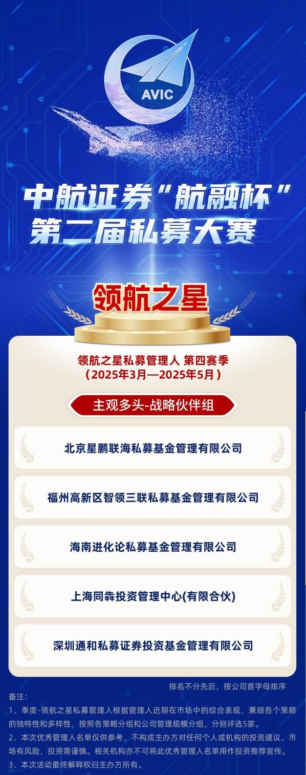 为搭建展示才华与交流分享的优质生态圈,"航融杯"私募大赛特别邀请多家上榜荣誉私募,分享其最新 投资见解与独特市场洞察,同时也希望助力投资者深入理解行业动态,把握市场机遇。 本次大赛为期一年,自2024年6月1日拉开帷幕,至2025年5月31日结束。大赛自推出以来,在业内引起 热烈反响,截止活动结束,吸引了近900家私募管理人报名参与。 赛事期间,既见证了市场的起伏变迁,也记录了众多私募管理人的成长与突破。随着赛程结束,大赛组 委会开展了最后的荣誉评选。经过一系列综合考量,第四赛季(2025年3月至5月)、年度(2024年6月至 2025年5月)、两年期(2023年6月至2025年5月)以及专项奖的荣誉私募名单正式揭晓,为本次大赛画上了 完美的句号。众多优秀的私募管理人不仅在各自专注的策略领域保持优势,更凭借卓越的投资能力与出 色的风控表现,从大赛中脱颖而出。 荣誉榜单:五大策略领域齐绽放,优秀管理人各展所长 经过严格评选,五大策略组的优秀私募管理人凭借各自优势脱颖而出,在不同周期中展现了专业实力: 为深化与私募机构的合作,助力行业高质量发展,中航证券举办了第二届"航融杯"私募大赛。依托这一 平台,中航证券旨在 ...