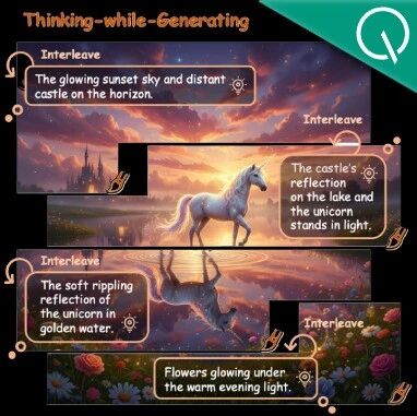 TwiG团队 投稿 量子位 | 公众号 QbitAI 在文生图 (Text-to-Image) 和视频生成领域,以FLUX.1、Emu3为代表的扩散模型与自回归模型已经能生成极其逼真的画面。 但当你要求模型处理复杂的空间关系、多物体交互或精准的数量控制时,它们往往会"露怯":不是把猫画到了窗户外面,就是把三个苹果画 成了四个。 为了解决这个问题,学术界此前主要有两条路: 一条是 "谋定而后动" (Think-before-Generation) ,即在画第一笔之前,先写好详细的布局计划。但这就像让画家在动笔前必须把每一 笔都想得清清楚楚,一旦开画就无法更改,缺乏灵活性。 另一条是 "亡羊补牢" (Think-after-Generation) ,即先把图画完,再通过多轮对话来挑错、修改。这虽然有效,但往往意味着巨大的推 理开销和漫长的等待时间。 那么,有没有一种方法,能让模型像人类画家一样,在作画的过程中停下来看一眼,既能审视刚才画得对不对,又能为下一笔做好规划? 近日,来自香港中文大学、美团等机构的研究团队提出了一种全新的范式—— Thinking-while-Generating(TwiG)。这是首个在单 ...