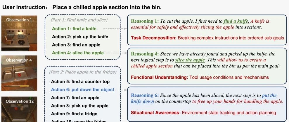 核心观点 - 大规模视觉语言模型在具身规划任务中存在处理复杂场景的困难 但环境感知规划叙事增强框架通过四项认知能力注入全面环境理解 显著提升任务成功率 并在基准测试中超越专有系统 [2][6] 技术框架 - 环境感知规划叙事增强框架整合视觉外观建模 空间推理 功能抽象和语法接地四项认知能力 为模型提供全面环境理解 [2] - 仅通过课程学习使用原始视觉观测数据来开发和评估模型 不依赖与环境无关的模仿学习 [2] 性能表现 - 在EB-ALFRED基准测试中 Qwen2.5-VL实现60.7%的绝对任务成功率提升 [2] - 常识推理方面提升60.0% 长周期规划方面提升70.0% [2] - 增强后的开源模型大幅超越GPT-4o和Claude-3.5-Sonnet等专有系统 [2] 模型参数 - 框架将7B参数模型任务成功率提升60.7% [6] 应用领域 - 多模态模型在具身规划任务面临严峻挑战 该研究为具身规划带来新的可能 [6] - 研究涉及从视觉到行动的创新框架 突破多模态模型的具身规划瓶颈 [7]
