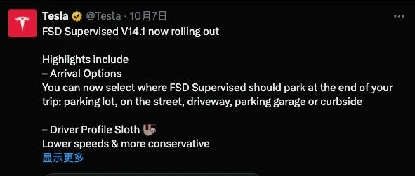 技术架构升级 - 实现千亿级别参数大模型在自动驾驶领域的落地应用[1] - 首次实现Robotaxi与量产车采用同源同架构技术方案[1] - 将导航和路线功能整合到基于视觉的神经网络系统中实现实时处理[6] 功能优化与新增 - 增加到达选项功能支持选择停车场街道私人车道停车场或路边等停车位置[6] - 新增对紧急车辆包括警车消防车救护车的靠边停车或让行处理能力[6] - 改进对静态和动态闸门的处理机制[6] - 提升对道路碎片如轮胎树枝箱子的规避能力[6] - 改善无保护转弯变道车辆切入和校车等多种场景的处理效果[6] - 增加自动窄视野清洗功能实现前置摄像头自清洁[6] - 新增前挡风玻璃内部残留物警示提示系统[6] 驾驶体验定制化 - 添加额外速度配置文件支持进一步自定义驾驶风格偏好[6] - 提供多种驾驶风格选项包括Sloth Chill Standard Hurry等模式[9] 系统可靠性提升 - 增强FSD管理系统故障处理能力[6] - 优化从降级操作中平稳恢复的机制以提高系统可靠性[6] - 在高速行驶时优化空气动力学冲刷效果[6] 硬件与适用范围 - 本次更新仅面向HW4 0硬件版本车辆推送硬件版本低于4 0的车辆不在此次更新范围内[1] - 功能目前适用于Model S和Model 3等车型[9][12]
