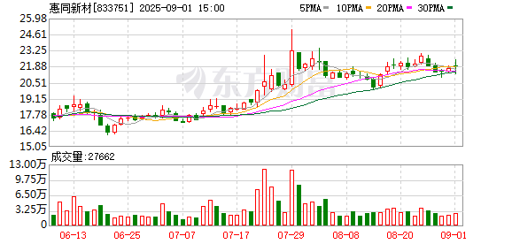 关于使用闲置募集资金进行现金管理的公告 本公司及董事会全体成员保证公告内容的真实、准确和完整,没有虚假记载、 误导性陈述或者重大遗漏,并对其内容的真实性、准确性和完整性承担个别及连 带法律责任。 一、募集资金基本情况 2023 年 7 月 17 日,湖南惠同新材料股份有限公司发行普通股 18,869,566 股,发行方式为向不特定合格投资者公开发行,发行价格为 5.80 元/股,募集资 金总额为 109,443,482.80 元,实际募集资金净额为 94,077,607.42 元,到账时 间为 2023 年 7 月 7 日。公司因行使超额配售选择权取得的募集资金净额为 14,954,723.83 元,到账时间为 2023 年 8 月 17 日。合计募集资金净额为 109,032,331.25 元。 二、募集资金使用情况 (一)募集资金使用情况和存储情况 截至 2025 年 7 月 31 日,公司上述发行股份的募集资金使用情况具体如下: 证券代码:833751 证券简称:惠同新材 公告编号:2025-079 湖南惠同新材料股份有限公司 | 序号 | 募集资金 | 实施主 | 募集资金计划投 | 累计投入募集 | ...