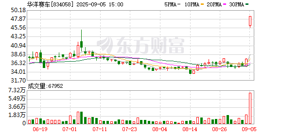 北交所上市公司华洋赛车登龙虎榜:当日收盘价涨幅达到29.98%