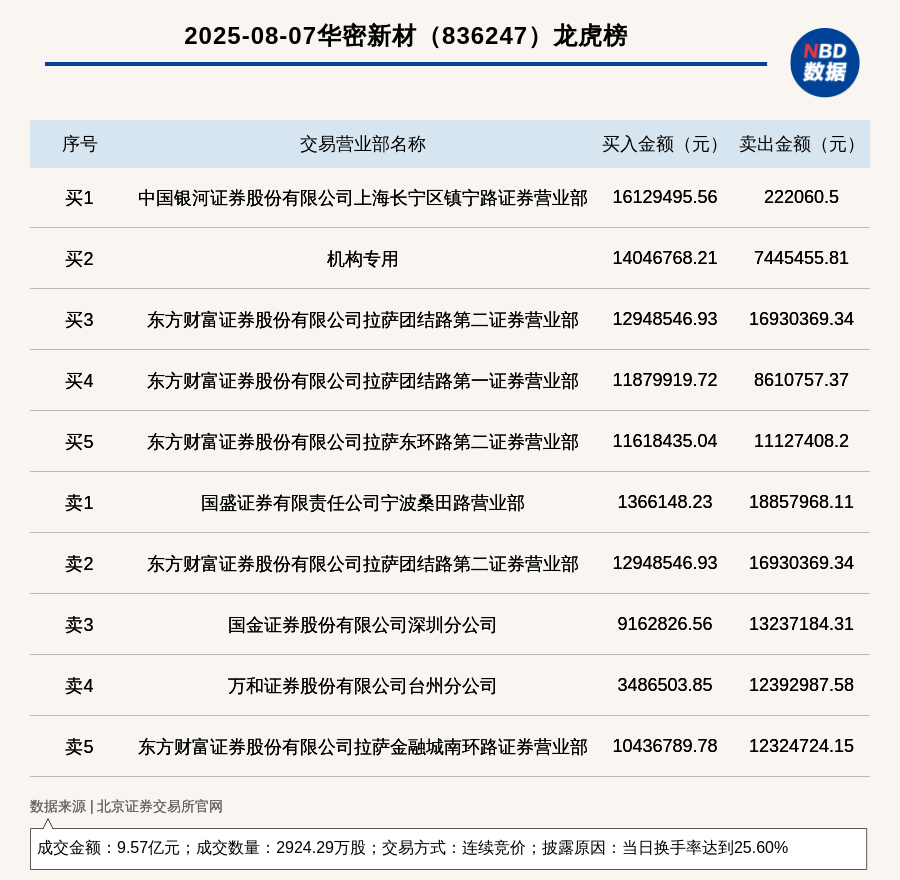 机构席位买入1404.68万 北交所上市公司华密新材登龙虎榜