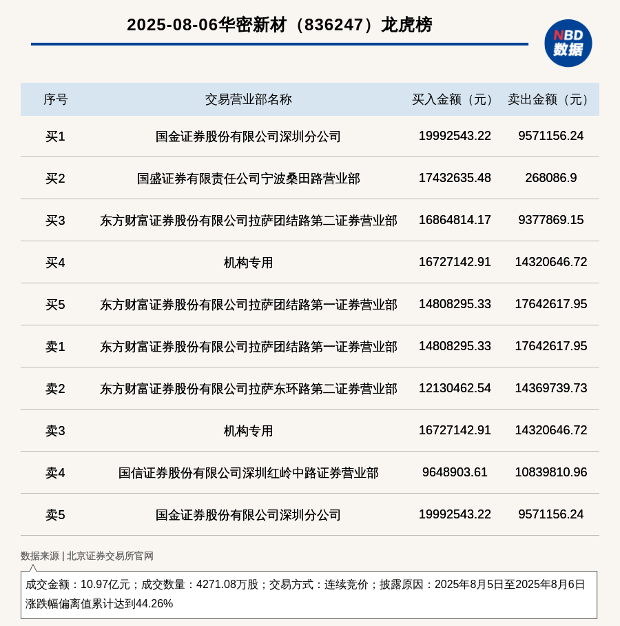机构席位买入1672.71万 北交所上市公司华密新材登龙虎榜