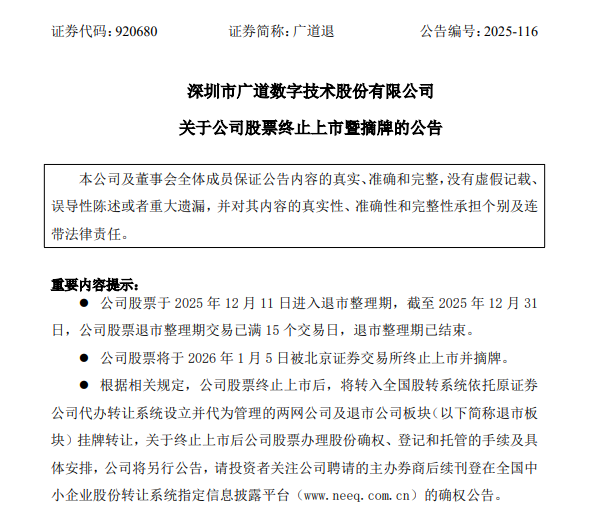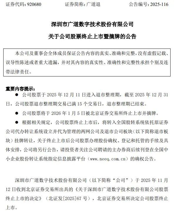 2026年退市第一股,上市4年造假7年,北交所广道数字今起退市