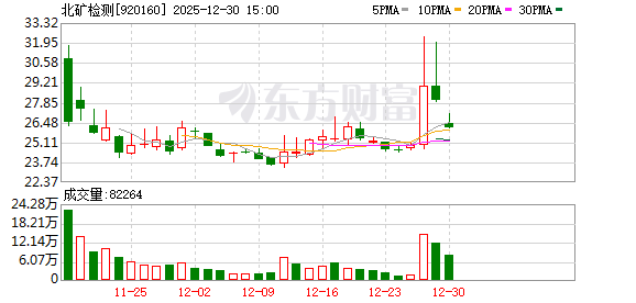 证券代码:920160 证券简称:北矿检测 公告编号:2025-157 北矿检测技术股份有限公司董事长、高级管理人员及证券事 务代表换届公告 本公司及董事会全体成员保证公告内容的真实、准确和完整,没有虚假记载、误 导性陈述或者重大遗漏,并对其内容的真实性、准确性和完整性承担个别及连带法律 责任。 一、董事长、高级管理人员换届的基本情况 根据《公司法》及公司章程的有关规定,公司董事会于 2025 年 12 月 26 日审议并 通过: 选举李华昌先生为公司董事长,任职期限三年,自 2025 年 12 月 26 日起生效。该 人员持有公司股份 800,000 股,占公司股本的 0.71%,不是失信联合惩戒对象。 聘任于力先生为公司总经理,任职期限三年,自 2025 年 12 月 26 日起生效。该人 员持有公司股份 240,000 股,占公司股本的 0.21%,不是失信联合惩戒对象。 聘任史烨弘先生为公司副总经理,任职期限三年,自 2025 年 12 月 26 日起生效。 该人员持有公司股份 120,578 股,占公司股本的 0.11%,不是失信联合惩戒对象。 聘任姜求韬先生为公司副总经理,任职期限三年,自 202 ...
