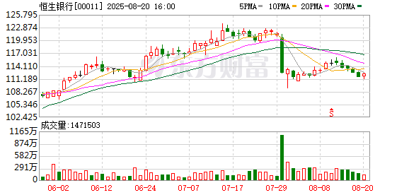 恒生银行(00011.HK)8月20日耗资2237.1万港元回购20万股