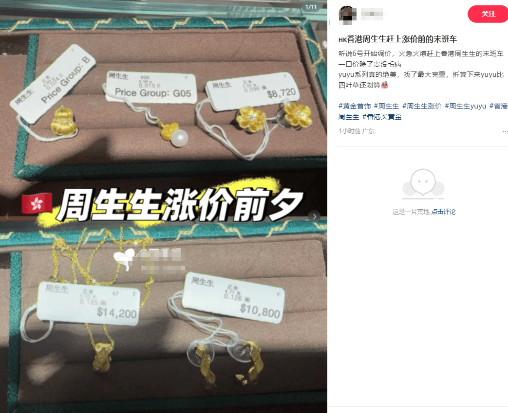 2026年伊始,周生生便官宣涨价。 瑞银预计,在2026年,随着市场对美国财政可持续性的担忧加深,央行及投资者或将继续青睐黄金等避险实物资产,黄金需求有望保持稳步增长。 面向消费者而言,黄金已不再是老一辈人的避险专属,而是成为了全年龄段的"刚需资产"。尽管价格上涨,但黄金消费的结构正在发生微妙的变化。近年以 来,消费者比以往任何时候都懂黄金,但也比以往任何时候都更追求"即时满足"。 "一口价"金饰通过精美的小克重设计,降低了单件商品的购买门槛。即使单克成本极高,但对于预算在3000-5000元之间的年轻消费者来说,买一件大品牌 联名的黄金首饰,其带来的社交货币价值和心理安慰感,远胜于同等价值的一根金条。 1月6日,周生生正式上调部分定价类黄金饰品价格,涨幅在200元至1500元之间,这是2026年开年以来中国主流金饰品牌的首次公开价格调整。 据了解,此次调价产品主要包括转运珠、联名定价款以及金镶钻类饰品等一口价产品。周生生工作人员向记者表示,这类商品因其工艺与品牌溢价属性,价 格随着国际金价波动,较为敏感。 值得注意的是,周生生这次调价通知下来后立即执行,几乎没有给门店预留缓冲时间。周生生官方旗舰店客服回应称 ...