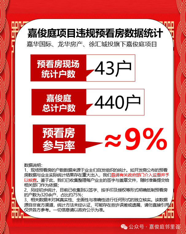 嘉俊庭项目维权事件 - 预看房参与率仅9%(总计440户仅43户参与)[1] - 约75%(320余户)业主明确抵制预看房[1] - 外立面铝板空鼓鼓包、真石漆与铝板色差显著[1] - 规划水景大幅缩水 连廊设计缺乏美感 围墙多处破损[1] - 户内存在墙砖空鼓等19项问题 包括电源线裸露未绝缘等安全隐患[1] - 开发商设置护栏路障阻挠业主进入 38℃高温下拆除遮阳伞[6] - 业主提出大门等升级建议被长期拖延[6] - 合作方龙华地产高层表态"可接受退房" 业主聚集填写退房申请[6] 上海楼市品质问题典型案例 - 静安玺樾三期认购率约61%(165套房源仅100组认购)[12] - 前两期527套房源累计售出279套 整盘去化率约53%[12] - 楼栋紧邻内环高架(直线距离不足200米)存在噪音污染[12] - 98㎡户型客厅面宽仅3.2米 主卧进深不足3.5米[12] - 浦开云璟首开318套房源吸引1468组客户 认购率高达462%[15] - 2025年四期二批次204套房源仅获340组认购 认购率168%[35] - 学区对口金桥镇中心小学 与宣传的"复旦系名校"差距显著[16] - 二期存在电梯品牌降标(上海三菱替代三菱)及公区减配[26] - 昌平云岸均价14.5万元/㎡ 总价2516万起 整盘去化率80%[38][39] - 项目无会所无集中绿化 配备机械车位[36] - 存在墙面粉刷后开槽破坏墙体等地暖施工问题[38] - 公区候梯厅有不明孔洞 消防楼梯间墙面需注浆修补[38] 行业趋势分析 - 购房者逐渐褪去对品牌光环的盲目推崇 转向审视产品力与诚信度[8] - 楼市供需关系调整下出现区位优势难掩产品缺陷等共性矛盾[9] - 当前楼市进入品质竞争新阶段 需坚守诚信底线与长期主义[43]