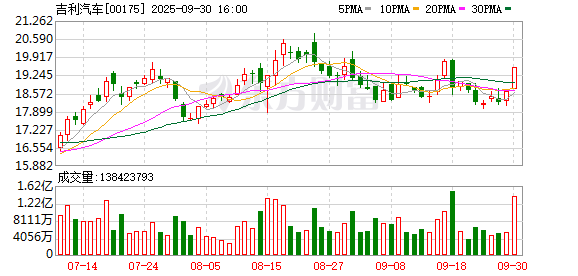 吉利汽车:9月汽车总销量为27.31万部 同比增长约35%