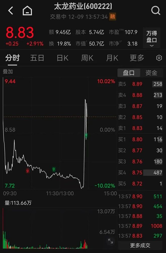 公司控制权变更 - 太龙药业控股股东郑州泰容产业投资有限公司筹划股份转让,可能导致公司控制权发生变更 [1][2] - 泰容产投与众生实业和江药集团江西医药控股有限公司签署股份转让协议,泰容产投拟将持有的5010万股公司股份分两次转让给江药控股,转让价格为11.043元/股 [3][6] - 交易完成后,公司控股股东将由泰容产投变更为江药控股,实际控制人将由郑州高新技术产业开发区管理委员会变更为江西省国有资产监督管理委员会 [3][6] - 这是太龙药业近年来第二次发生控制权变动,上一次是2021年11月泰容产投从众生实业受让约8244.12万股股份,并于2022年1月完成过户成为控股股东 [3][6] 交易价格与市场反应 - 股份转让价格11.043元/股,较停牌前8.58元/股的价格溢价超过28% [3][6] - 公司股票复牌后股价剧烈波动,以涨停价复牌后直线跳水,由红翻绿,午后盘中触及跌停,上演“天地板”,最终收于8.20元,下跌0.38元,跌幅4.43% [1][4] - 复牌当日成交量为1.59万手 [2] 公司近期财务表现 - 2022年公司营收同比增长22.2%,增幅创下2018年以来新高,但归母净利润出现亏损 [4][7] - 2024年前三季度,公司营业收入为11.87亿元,同比下降11.47%;归母净利润为0.25亿元,同比下降12.36% [4][7] - 2025年第三季度数据显示,公司每股收益为0.05元,每股净资产为2.75元,净资产收益率为2.85% [2]