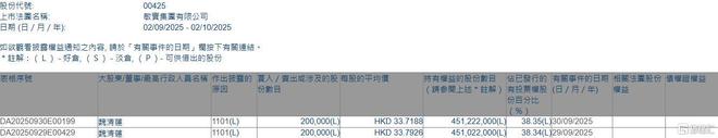 公司股权变动 - 敏实集团执行董事魏清莲于2025年9月29日至9月30日增持公司40万股股份 [1] - 增持股份的平均价格区间为每股33.7188港元至33.7926港元 [1] - 此次增持总金额约为1350.23万港元 [1] 持股比例变化 - 增持后,魏清莲的最新持股数量为4.51222亿股 [1] - 其持股比例由38.32%上升至38.35%,增加了0.03个百分点 [1] - 此次权益变动记录于联交所2025年9月29日及9月30日的披露文件中 [2]