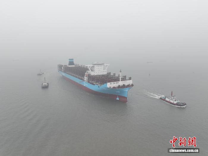 长江干线2026年首艘超大型新造集装箱船离港试航