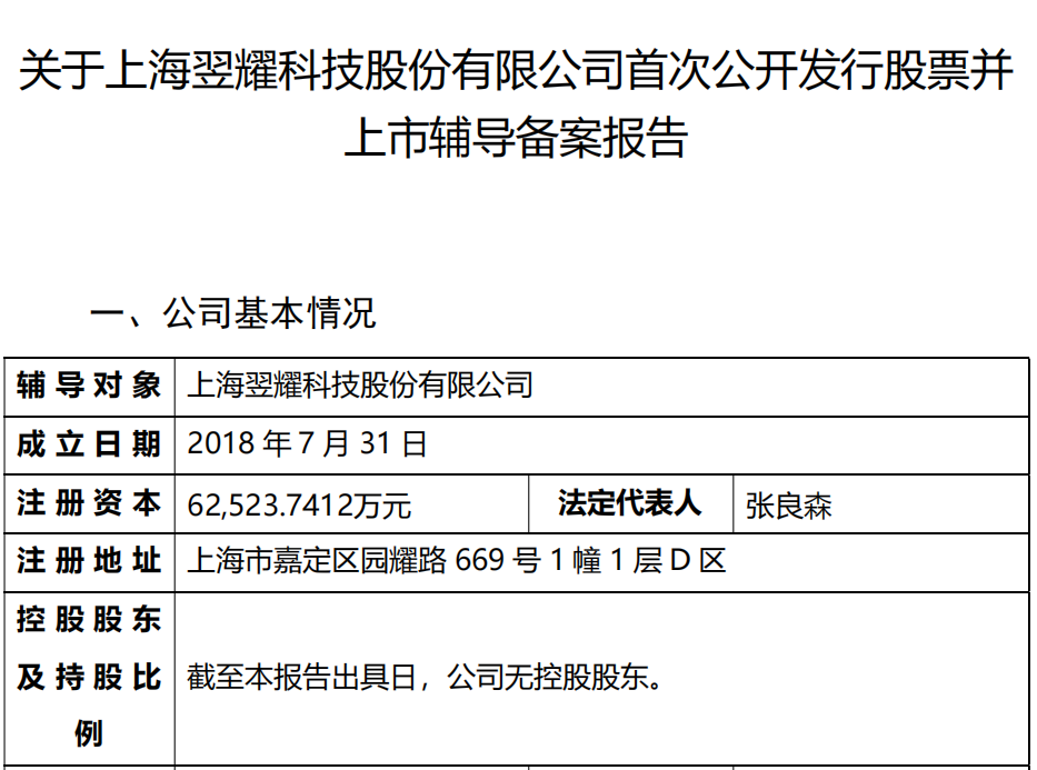 公司上市进程 - 上海翌耀科技股份有限公司已在上海证监局办理辅导备案登记 拟首次公开发行股票并上市 [1] - 辅导券商为申万宏源证券承销保荐有限责任公司 [1] 公司背景与业务 - 公司成立于2018年 [1] - 公司是复星国际旗下的智能科技集团 [1] - 公司致力于为客户提供高科技解决方案 [1] - 公司服务领域涵盖汽车焊装 总装 新能源 一般工业 食品饮料自动化及数字化等多个智能制造领域 [1]