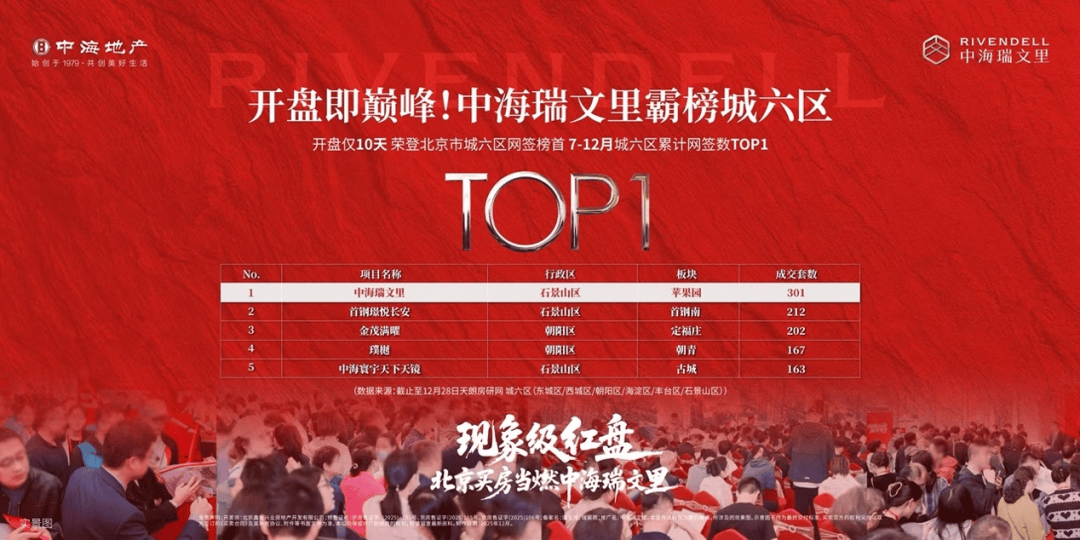 12月29日中海瑞文里网签超301套,中海瑞文里登顶京西楼市销冠