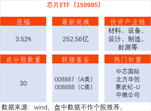 供不应求!芯片ETF(159995)上涨3.52%,中微公司上涨11.48%