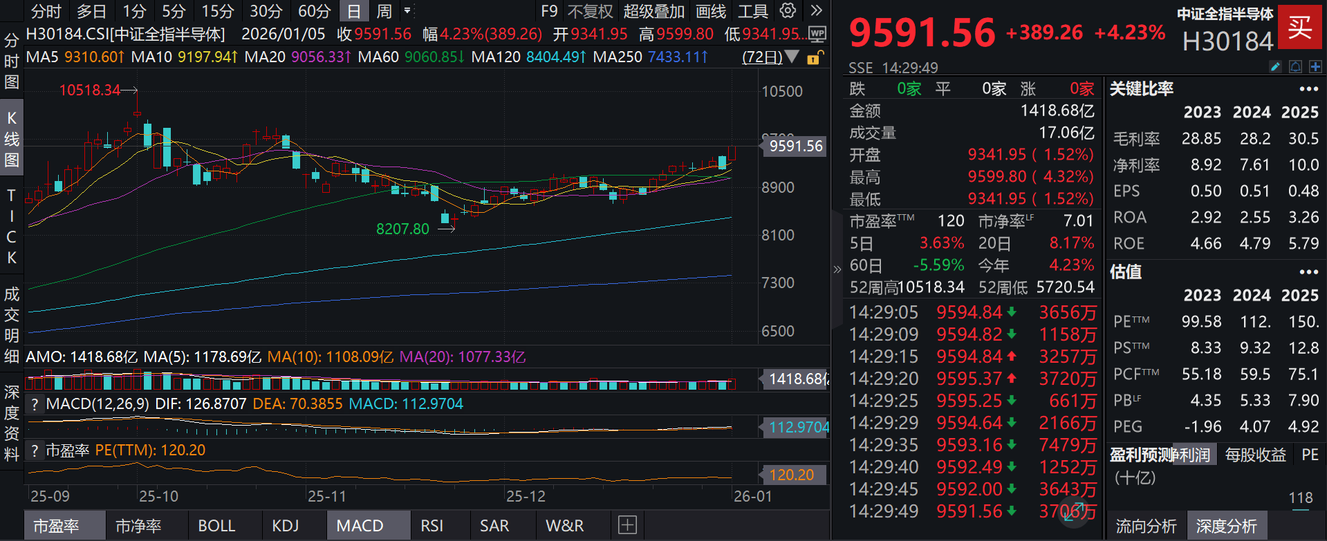 今日(1月5日),半导体板块大幅上涨,其中,中微公司涨超14%,燕东微涨超12%,上海新阳涨超11%,成都华微涨超10%,兆易创新、立昂微10CM涨 停。 泰康半导体量化选股股票发起式(A:020476;C:020477)主要跟踪中证全指半导体产品与设备指数,采用"数据深度+人工研判"双轮驱动模型,以量化工具捕 捉结构性机会。一方面,通过多因子模型动态筛选低估标的。基于财务数据与市场交易行为,构建涵盖盈利、成长、量价等六类核心因子的评估体系,以自 下而上为主挖掘定价偏差;另一方面,结合产业趋势定性校准,对集成电路设计、制造、设备等子行业进行精细化分析,判断各子行业当前所处的位置及未 来发展方向,实时调整配置比例。 最新报告期数据显示,泰康半导体量化选股股票发起式(A:020476;C:020477)前十大重仓股包括寒武纪、中芯国际、海关信息、豪威集团、北方华创、兆易 创新、澜起科技、华虹公司、紫光国微、瑞芯微。 截至2025年11月30日,泰康半导体量化选股股票发起式(A:020476;C:020477)单位净值较前一日上涨1.28%,自2024年5月成立以来的收益率已超100%。 展望后市,浙商证券认为,2 ...