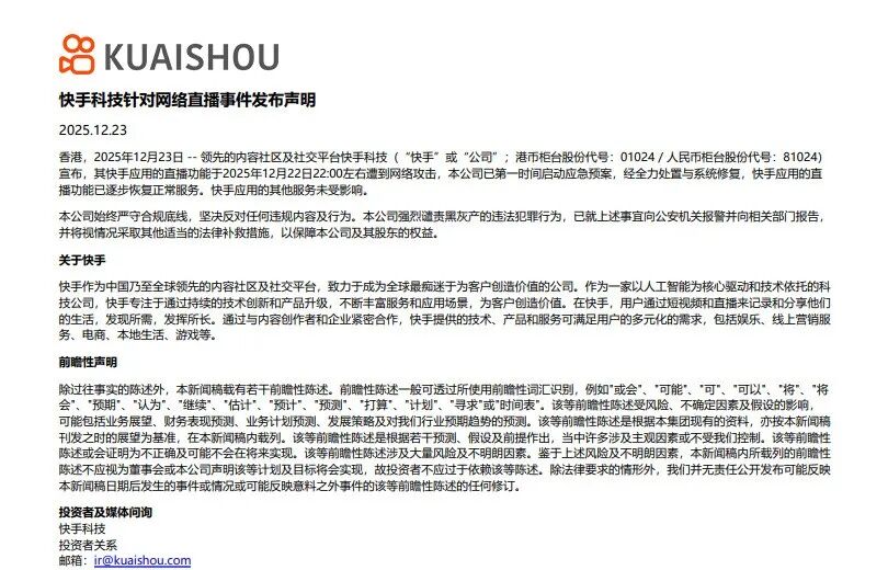 还有专家在接受媒体采访时表示,当天攻击时间为晚间流量高峰期,此时用户活跃度高且平台风控系统 负载压力大,无疑更容易让攻击者抓住防御漏洞。 来源:环球时报 【环球时报报道 记者 郭媛丹】22日晚间,快手直播平台的多个直播间突然播放违规内容,快手称平台 遭到黑灰产攻击并已报警。快手公司23日中午在港交所发布公告称,快手应用的直播功能于22日晚10时 左右遭到网络攻击,公司已第一时间启动应急预案,经全力处置与系统修复,快手应用的直播功能已逐 步恢复正常服务。该事件引发广泛关注,此次针对直播平台的网络攻击是如何实施的?未来又该如何防 范?《环球时报》记者针对上述问题采访了多位网络安全专家。 攻击者需要穿透实名审查等机制 奇安信安全专家汪列军24日对《环球时报》记者分析称,此次攻击之所以能造成大规模破坏,核心原因 在于黑灰产已全面迈入"自动化攻击" 时代。黑客借助自动化工具批量注册、操控僵尸号,实现违规内 容的秒级发布与扩散,这种规模化攻击完全超出人工审核的应对极限。 "根据现有信息来分析,攻击者是基于直播平台的服务和API通过自动化作业实施整个过程。相当于控 制了大量的BOT,自动化进行注册、登录、内容播放、发送诈骗 ...