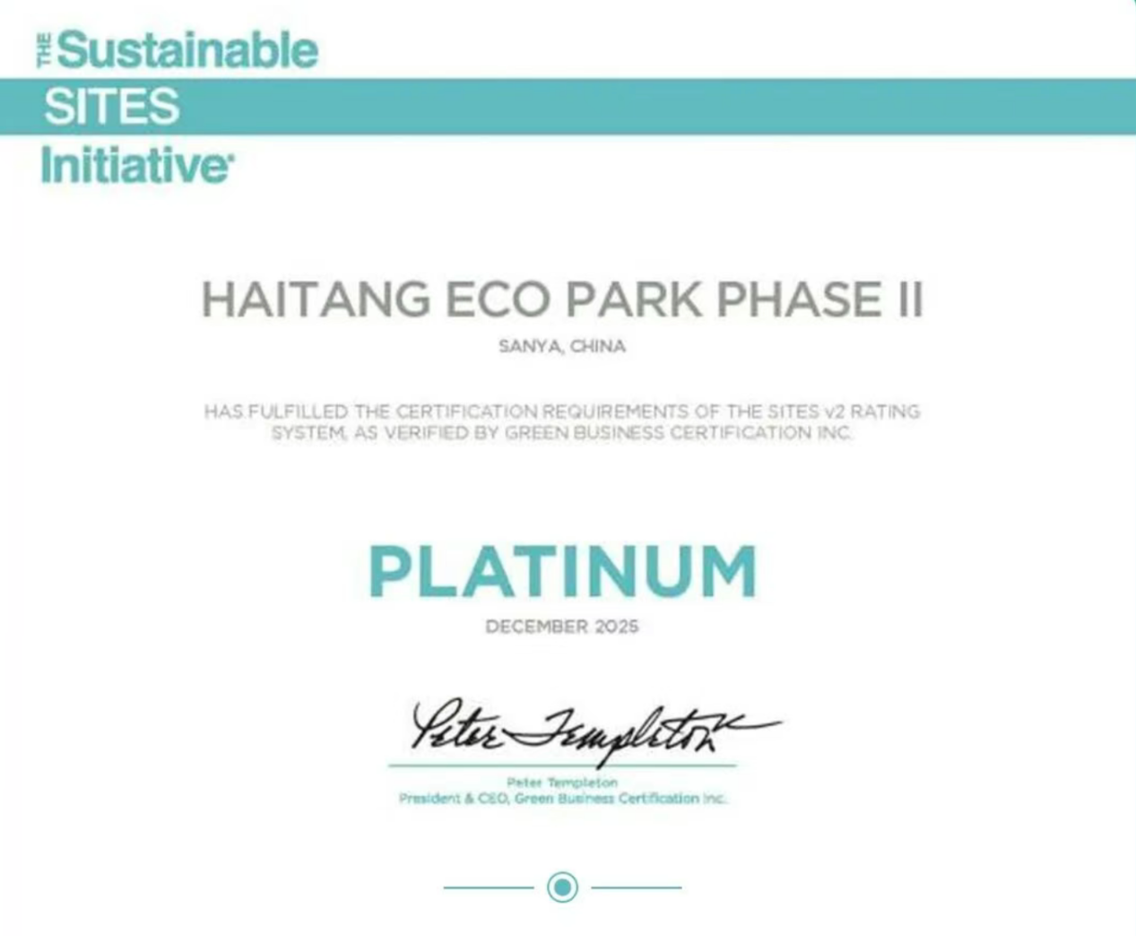 转自:新华财经 今年12月18日,海南自由贸易港正式启动全岛封关运作,标志着中国高水平对外开放进入新阶段。在这一背景下,由华润置地代建的三亚海棠河生态公园二 期近日以全球最高分通过国际可持续场地评价体系(SITES)V2铂金级认证,成为海南在生态治理与可持续城市运营领域获得的又一项国际权威认可。 据了解,SITES(THE SUSRAINABLE SITES INTIATIVE)由美国景观设计师协会ASLA、LADY BIRD JOHNSON WILDFLOWER CENTER、美国植物园保 护协会等权威机构联合发起,并由美国绿色建筑委员会(USGBC)负责管理,是国际上衡量可持续场地规划、建设与运营水平的重要标准。其铂金级代表 最高等级,授予在生态修复、自然资本提升方面达到"国际顶尖水准"的示范工程。 对此,业内认为,三亚海棠河生态公园二期能以全球最高分获此最高等级认证,该成果不仅是对单一项目建设质量的评价,更从第三方角度验证了华润置地 以ESG为导向参与城市治理、统筹复杂公共项目并实现长期运营的综合能力。 以ESG为统领:构建系统性城市生态治理路径 三亚海棠河生态公园是城市重要的公共生态基础设施项目,全长 ...